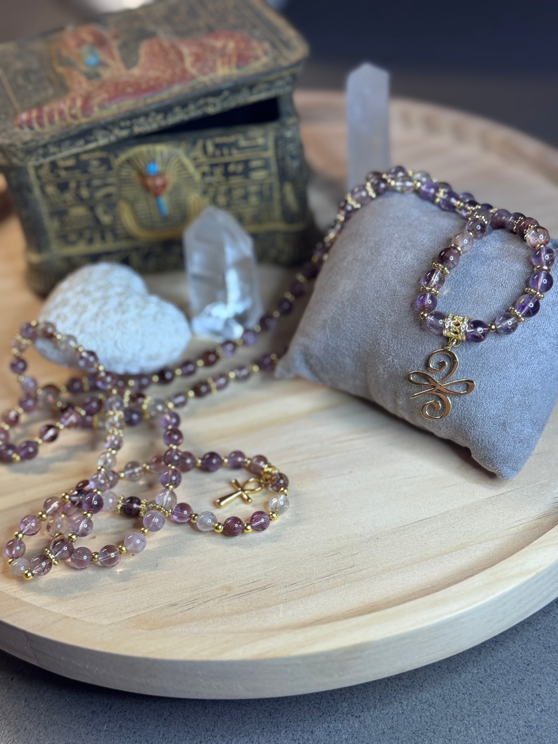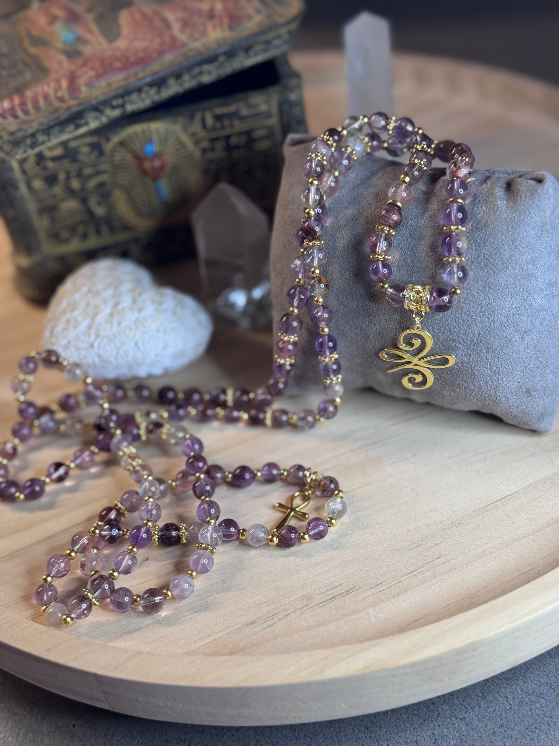 Diese handgefertigte Kette besteht aus kraftvollen Super Seven Kristallen – ein seltener Edelstein, der sieben Mineralien vereint und für spirituelles Erwachen, Erdung und kosmische Verbindung steht. 💎