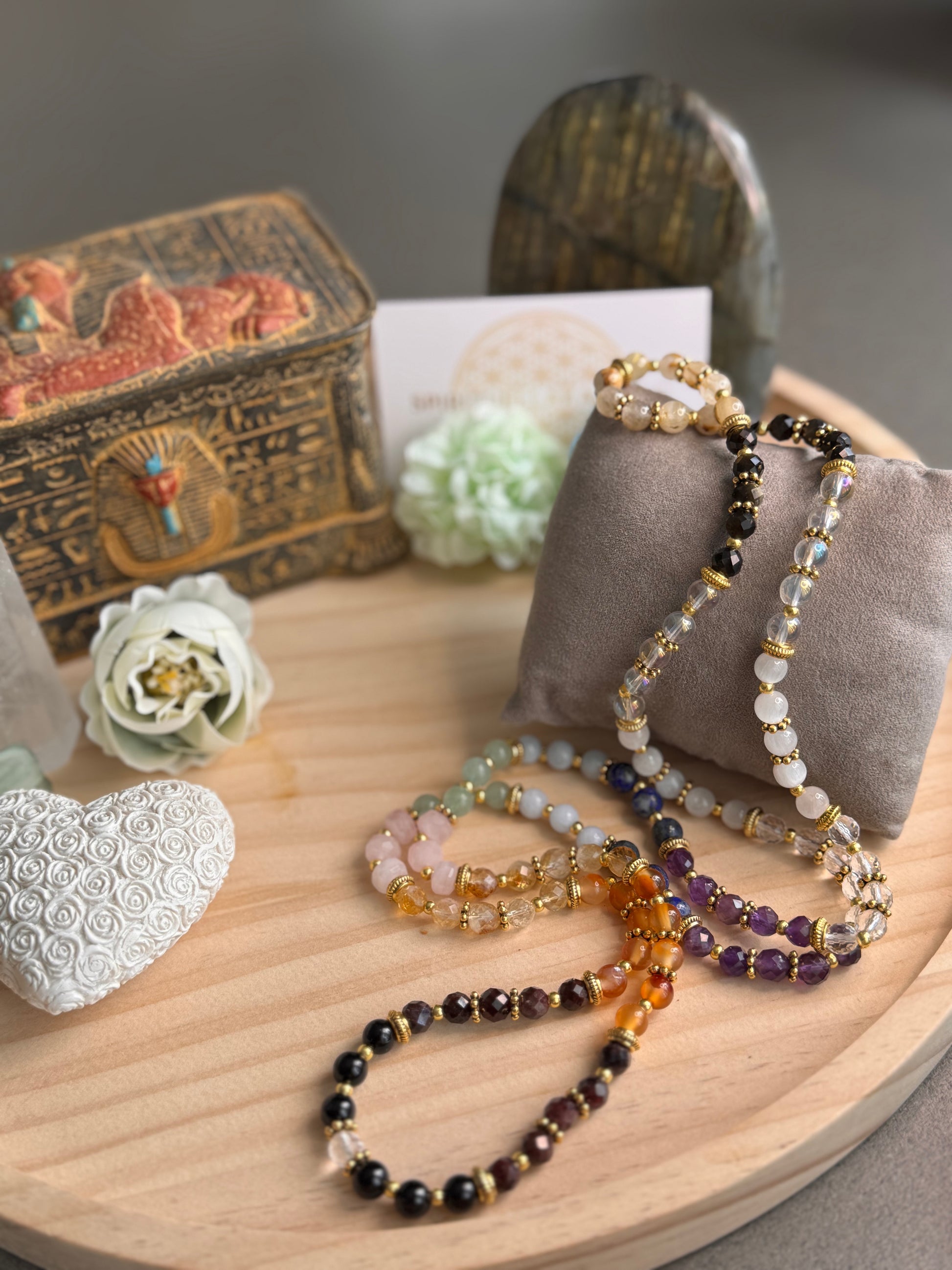 Diese handgefertigte Edelsteinkette vereint kraftvolle Heilsteine für alle sieben Chakren – erweitert durch zusätzliche Energien für Erdung, Schutz und Transformation. Mit liebevoll ausgewählten Perlen wie Amethyst, Karneol, Rosenquarz, Bergkristall, Onyx und mehr, begleitet dich diese Kette auf deinem spirituellen Weg und unterstützt deine energetische Balance. Veredelt mit goldfarbenen Details – ein eleganter Begleiter mit tiefer Wirkung.
